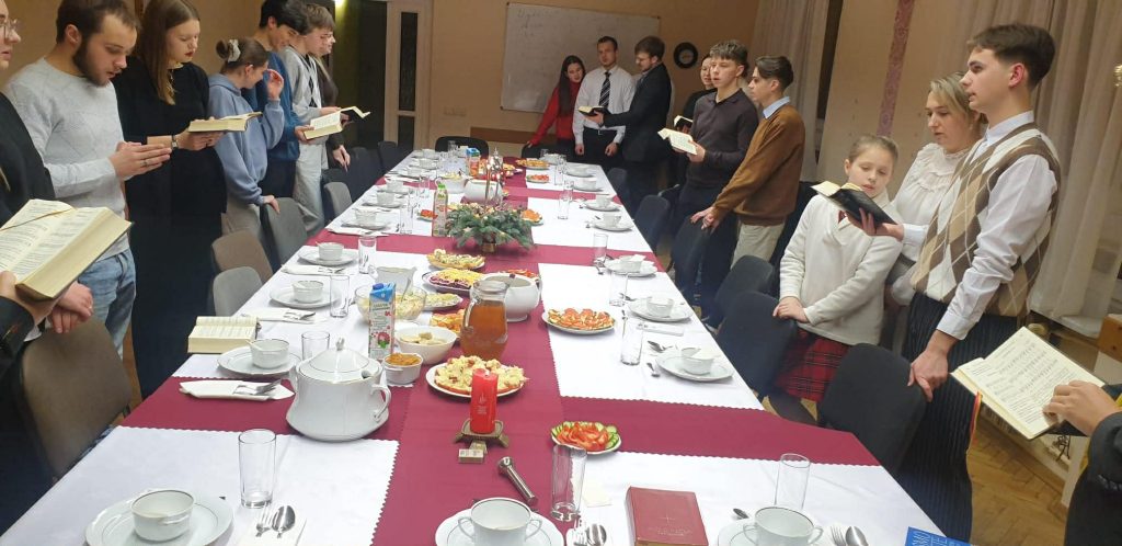 Po tej części zasiedliśmy do stołu, aby skosztować potraw przygotowanych przez młodzież. Na zakończenie wspólnie odśpiewaliśmy kolędy w języku polskim, białoruskim i ukraińskim.