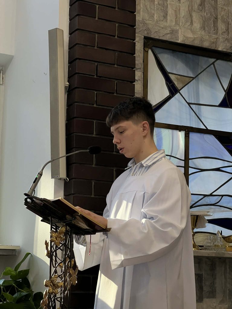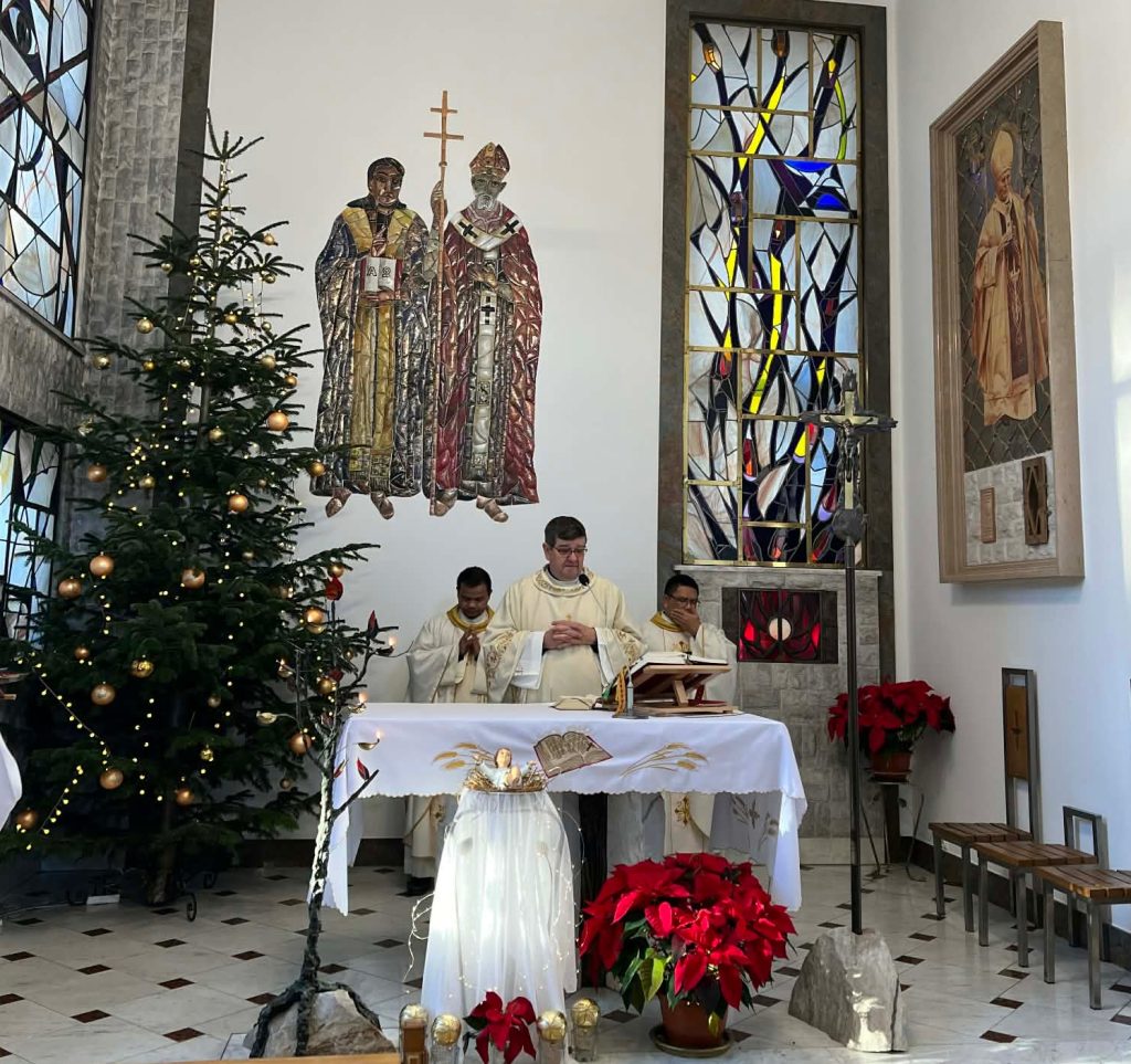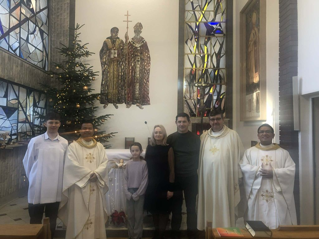 Najpełniej przeżywa się go w gronie najbliższej rodziny. Zdarzają się jednak sytuacje, w których z różnych powodów święta trzeba spędzać z dala od bliskich, a niekiedy nawet poza ojczyzną. Do takich osób należą niektórzy stypendyści Watykańskiej Fundacji Jana Pawła II, którzy tajemnicę Wcielenia Syna Bożego przeżywali w tym roku w Lublinie. Kilkanaście osób z różnych przyczyn pozostało w Polsce, jedną z nich jest trwająca wojna na Ukrainie. W środę, o godz. 20.00, zgromadziliśmy się w auli przy wigilijnym stole. Spotkanie rozpoczęliśmy od wspólnego śpiewu kolędy „Wśród nocnej ciszy”, po czym ks. Francis odczytał fragment Ewangelii opisujący narodziny Pana Jezusa. Następnie pobłogosławiłem opłatki i złożyłem wszystkim uczestnikom świąteczne życzenia. Później, łamiąc się białym opłatkiem, składaliśmy sobie życzenia indywidualnie.