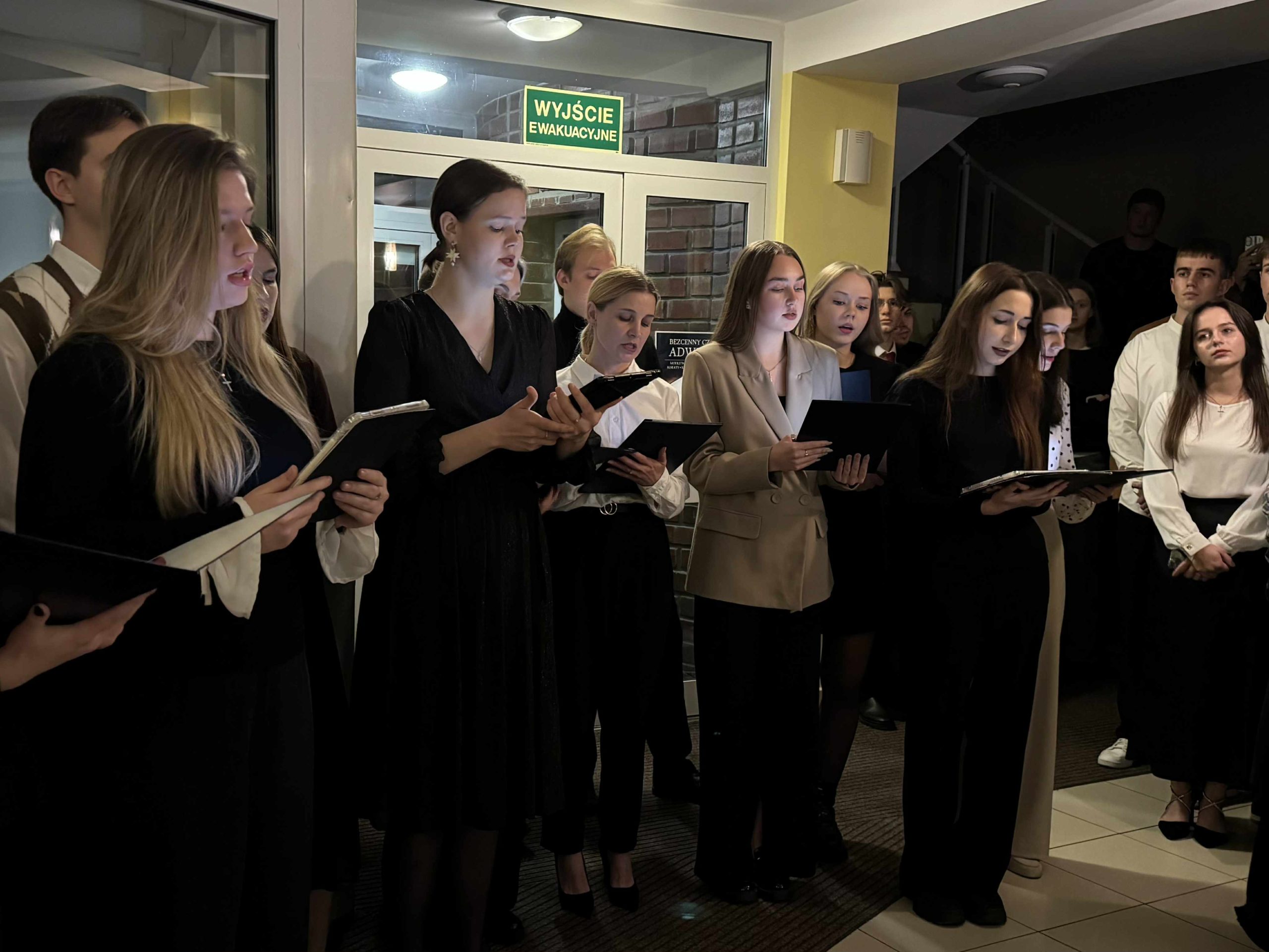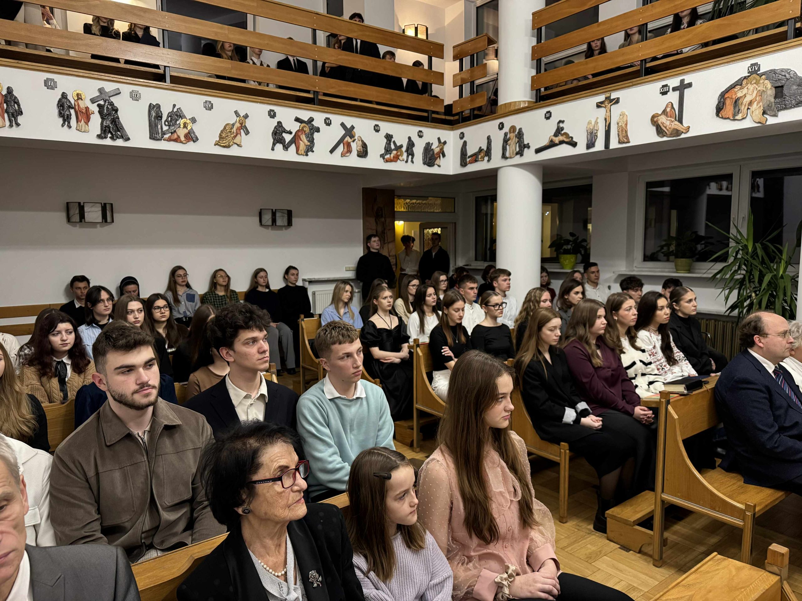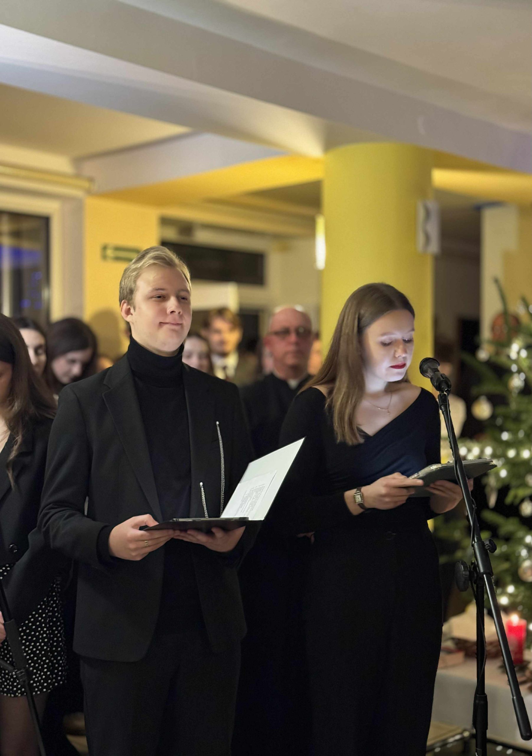 Oprawę muzyczną zapewnił chór fundacyjny, który wykonał tradycyjne polskie, ukraińskie i białoruskie pieśni adwentowe i kolędy. W imieniu stypendystów świąteczne życzenia złożyli Julia Konan i Stanisław Rutkowski, stypendyści z V rocznika, dziękując za wsparcie i życzliwość, okazywaną przez władze Fundacji i jej przyjaciół. Następnie głos zabrali: Dyrektor Biura TP KUL, ks. Prowincjał oraz pani Wiceprezes z Warszawy. Po okolicznościowych przemówieniach ks. Arcybiskup pobłogosławił opłatki, którymi wszyscy przełamali się, składając sobie życzenia świąteczne i noworoczne.