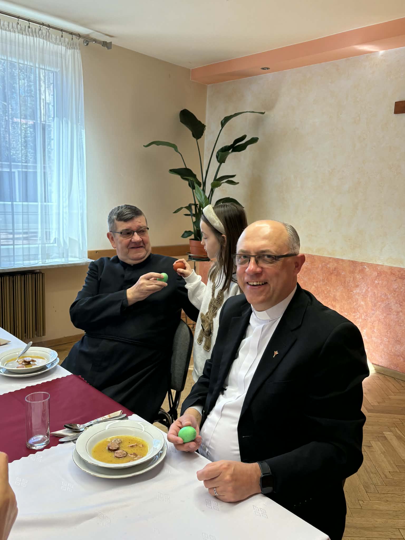 W poranek wielkanocny zasiedliśmy razem do tradycyjnego śniadania. Ks. Jan Strzałka, dyrektor Domu, skierował do wszystkich serdeczne życzenia zdrowia, pokoju i codziennej radości płynącej ze Zmartwychwstania Chrystusa.